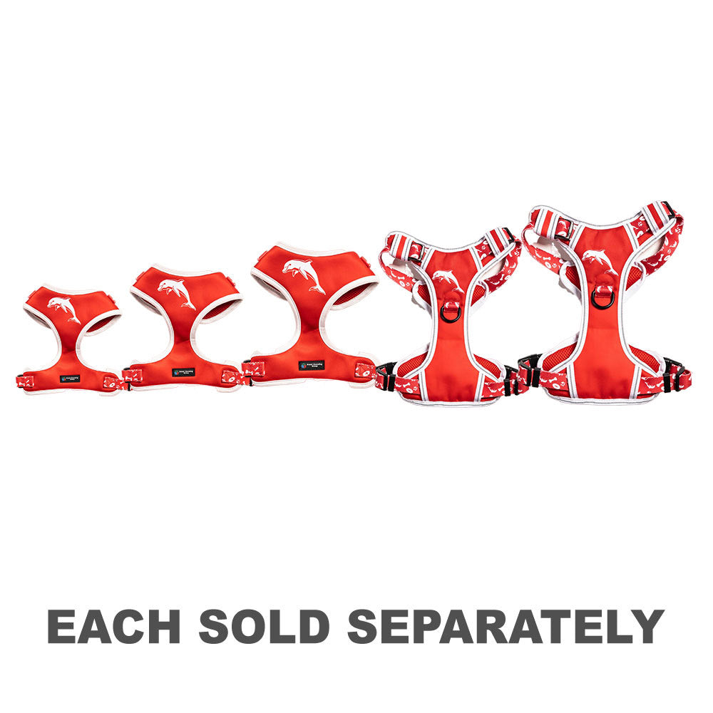 ntroducing the NRL Dog Harness, available in sizes from X-Small to X-Large. Crafted from high-quality neoprene (for smaller sizes) and canvas (for larger sizes), it features adjustable straps for a perfect fit. Complete with breathable mesh lining, quick-drying material, and D-rings for regular and no-pull walking