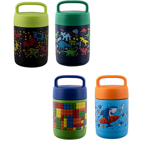 Den nye Avanti Yumyum Food Jar er lavet af kvalitetsmateriale med et iøjnefaldende design med et robust håndtag til let at bære. Perfekt til at pakke dine børns morgenmad eller frokost på farten, denne madkrukke bevarer ikke madlugt eller lugt. Låget sikrer også, at din mad forbliver frisk indtil frokosttid. Avanti Yumyum Food-fødevarekrukken er lavet af alle fødevarsikre materialer og BPA og phthalatfri, og kommer i en række søde design, som dine børn kan vælge imellem.