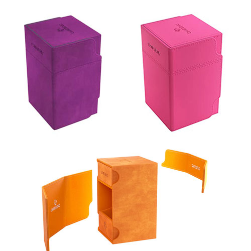 Den konvertible vakttårn kombinerer dækboks, tilbehørskuffe og kortholder i en elegant kasse. Kortholderen kan holde op til 100 dobbeltærmet kort, beskyttet af blød indre mikrofiberforing. Tilbehørsskuffen er perfekt til at huse terninger, symboler og andre små genstande.