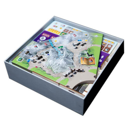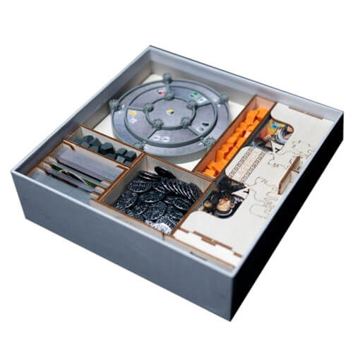 • Træbase til slottet, der fungerer som et låg, når spillet opbevares væk