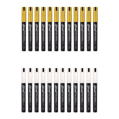 Street Paint Markers can create, colour and cover everything! This quality paint marker allows the artist to write and draw on all surfaces, including cardboard, paper, metal, wood, plastic, glass, fabric, stones, etc. Just try it! Street Paint Markers contain strong pigmented paint ink, delivering excellent opaque coverage and durability. Best of all, they are sun proof and waterproof.