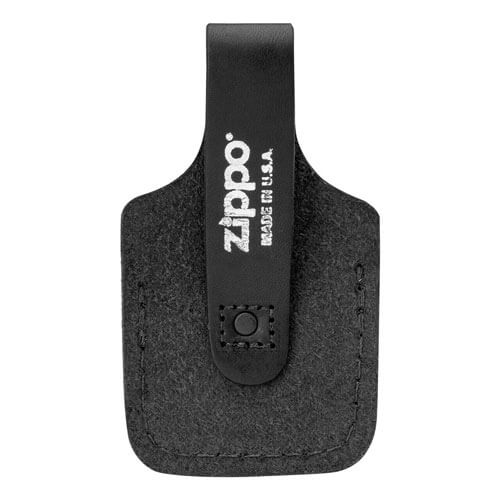 Zippos Feuerzeugtasche aus schwarzem Echtleder mit Daumenkerbe hat ein stilvolles Design und ist dennoch leicht zugänglich. Zu den Merkmalen dieser Feuerzeugtasche gehören eine Daumenkerbe zum einfachen Herausnehmen jedes winddichten Zippo-Feuerzeugs, eine breite Lederschlaufe, die an Gürtel mit einer Breite von bis zu 2 Zoll passt und jedes winddichte Feuerzeug von Zippo sicher hält. Wird in einer schwarzen Zippo-Box geliefert.