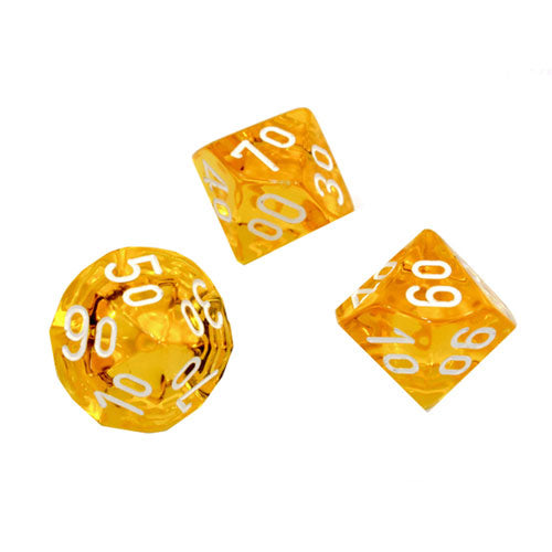 Translucent Polyhedral Clear/white Tens 10 ~ Multiple loose dice are pictured to show all sides and possible color variations. Item Code is for individual dice.