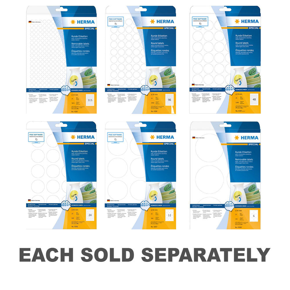 Add a touch of charm to your labeling tasks with Herma Round Removable Labels! This pack includes 25 white labels in a round shape, perfect for a variety of labeling applications. With a removable adhesive backing, these labels offer convenience and flexibility for temporary labeling needs. Whether for organizing, crafting, or personal use, these round removable labels provide versatility and charm for all your labeling needs. Get ready to make your labels stand out with Herma Round Removable Labels!
