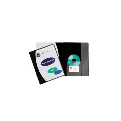 - Inside back cover with vertical pocket, CD holder and business card holder