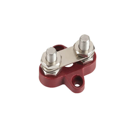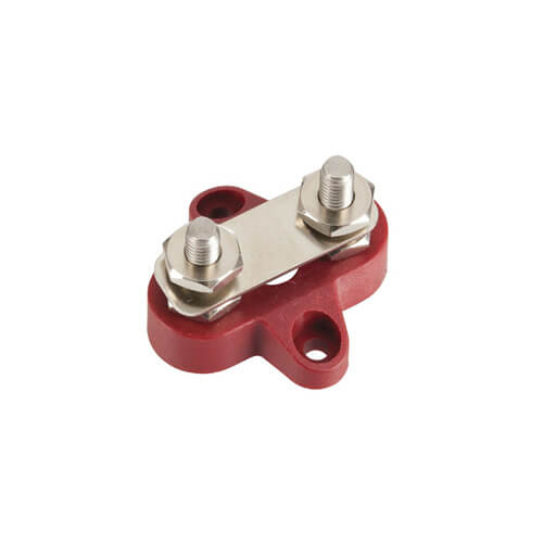 Heavy duty stainless steel posts mounted on a moulded plastic base. Three versions available with single connection or bridging plate to suit a variety of power distribution applications. 48VDC max.