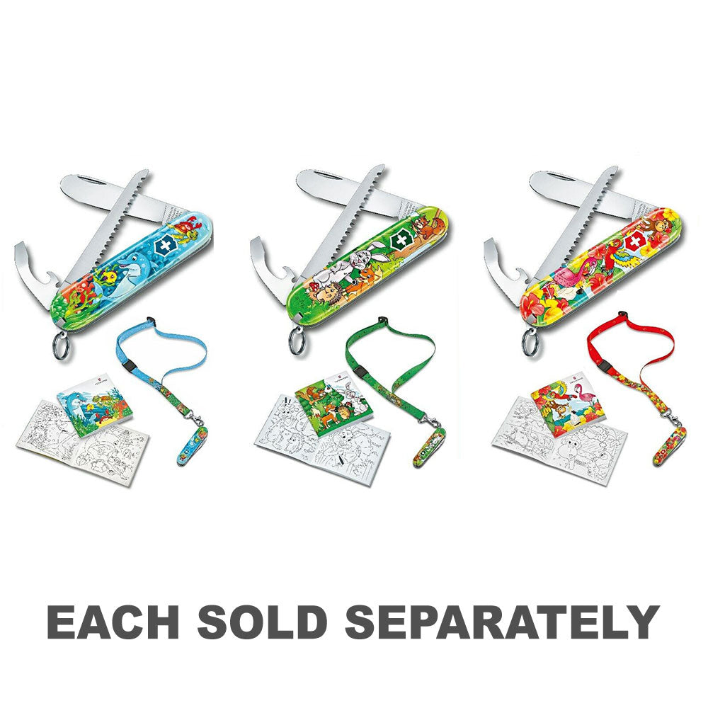 Children are naturally curious. Our fun pocket knife set will help them explore and engage with the world around them. In three exciting animal designs, each set comes with a practical neck strap and an adventure-filled coloring book that also shows children how to safely use their knives (with adult supervision). From carving little figures to whittling sticks, help them create memories for a lifetime.