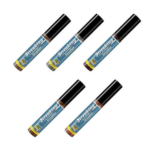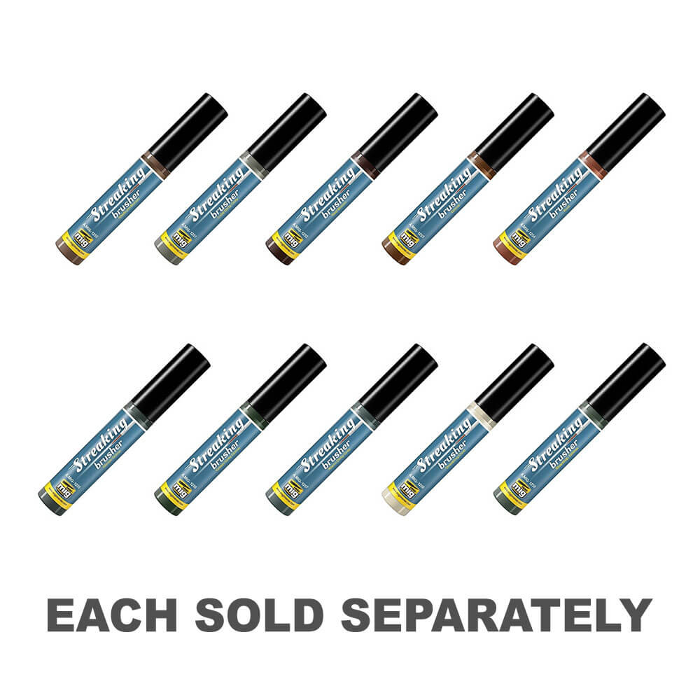 Uno de los mejores y más populares productos clásicos de AMMO ahora está disponible en un envase innovador que hará que todo el proceso de agregar efectos de rayas a tus modelos sea una experiencia más agradable con resultados precisos. La gama de productos STREAKING debe aplicarse con una brocha en líneas verticales para difuminarse y crear el efecto de suciedad y mugre veteadas. Para simplificar esta técnica de uso universal, AMMO ha recurrido a la innovadora presentación utilizada para nuestra gama OILBRUSHERS: un envase con un pincel incorporado adaptado a la técnica haciendo que la aplicación sea mucho más fácil y rápida.