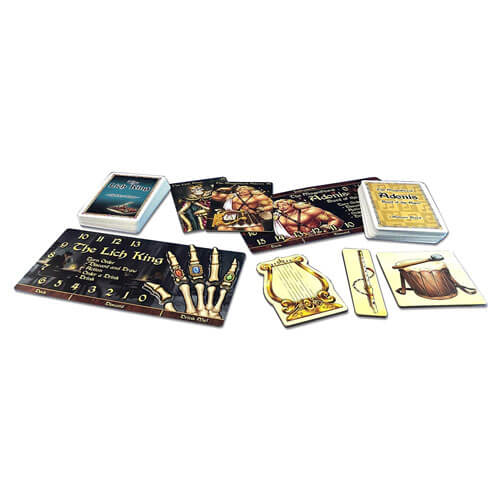 The Red Dragon Inn: Alies Adonis vs. The Lich King expande la fiesta en el Red Dragon Inn con un nuevo héroe y un nuevo villano. Estos archienemies aportan nuevas mecánicas y diversión a la fiesta, y se pueden combinar con cualquier set de base Red Dragon Inn. El Rey Lich incluye un mazo lateral que le permite ser interpretado como jefe en la variante de batalla de Boss introducida en el Red Dragon Inn 6: Villains. Como una ventaja adicional, este conjunto incluye alfombrillas de jugador personalizadas y divisores de mazo que son compatibles con el Red Dragon Inn 5: ¡el tesoro de personajes!