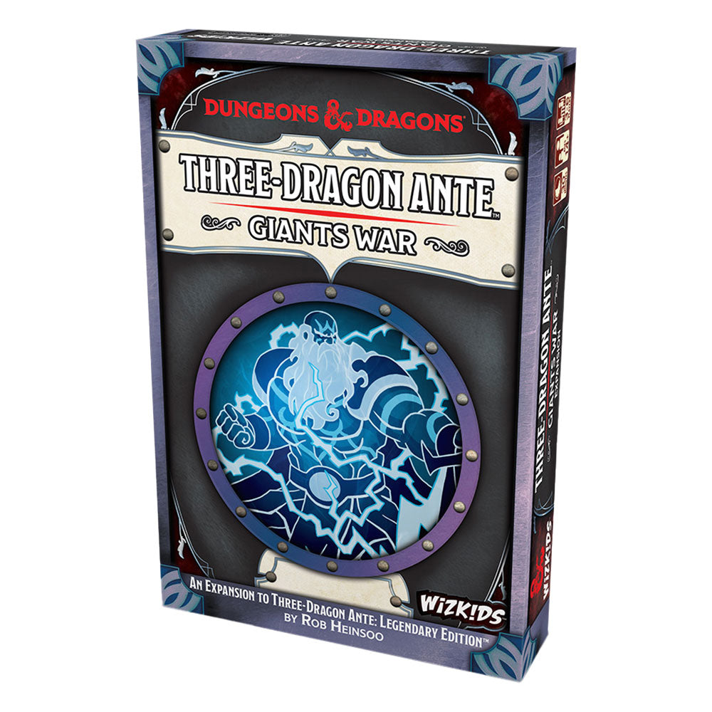 Hace mucho tiempo, los dragones y los gigantes lucharon por una guerra de mil años y los sobrevivientes humanos conmemoraron las batallas al agregar a los Gigantes a su juego de cartas y habilidades de alta apuesta. ¡Con más de 100 nuevas cartas de tres dragones: la guerra de Giants agrega una forma completamente nueva de jugar el clásico juego de cartas independientes de Dungeons & Dragons! Mezclarás nuevos trajes gigantes, mientras divides las apuestas en dos: Dragon Stakes y Giants Stakes. Los jugadores luchan por las apuestas donde su vuelo es más fuerte, ¡te dan nuevas rutas a la victoria! También hay una nueva forma de encontrar dragones legendarios y los nuevos dioses gigantes. ¡Nuevos poderes permiten que los jugadores dibujen cartas poderosas desde el legendario mazo!