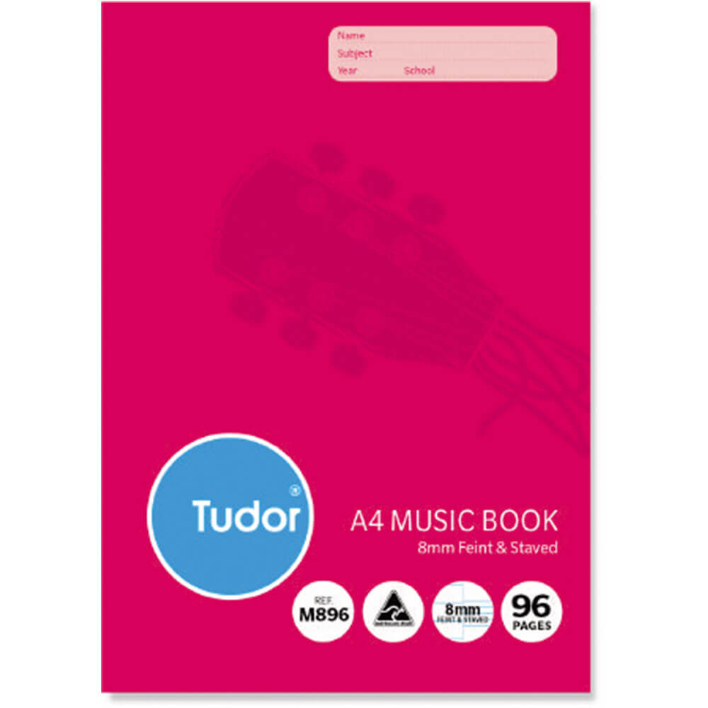 Music Book - Olympic - A4 - Feint & Staved - 96 Page Tudor Music Books avec Staples in the Center Pages