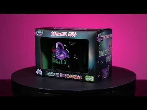 Vous serez bien félin toute la journée! Mug en céramique avec un chat fou effronté entouré de visages souriants. Lavage à la main uniquement - pas le micro-ondes ou le lave-vaisselle.