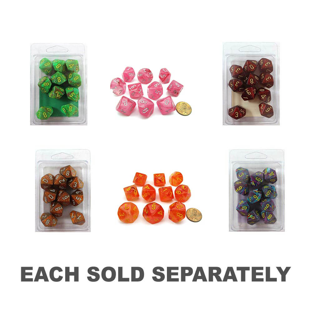 Questo set di 10 dadi look, sensazione e rotola bene e sarà una grande aggiunta a qualsiasi gioco o collezione. Il numero superiore viene utilizzato su un tiro. I bordi consentono un facile riconoscimento delle forme e i numeri sono più grandi possibile su ciascuna faccia. Questo set include 10 dadi D10 (dieci lati). I dadi sono disponibili nell'imballaggio a conchiglia al dettaglio. Ogni matrice misura circa 16 mm (altezza di misurazione mentre la matrice è in piano). Stanno misurando ~ 23 mm da un punto all'altro.