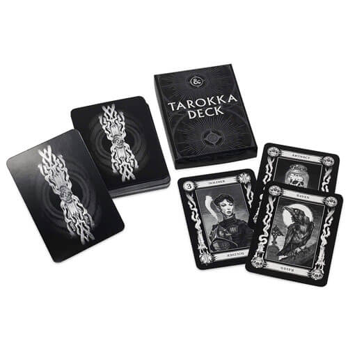 - 54 carte Tarokka timbrate, che aiutano a determinare il percorso degli eroi attraverso l'avventura.