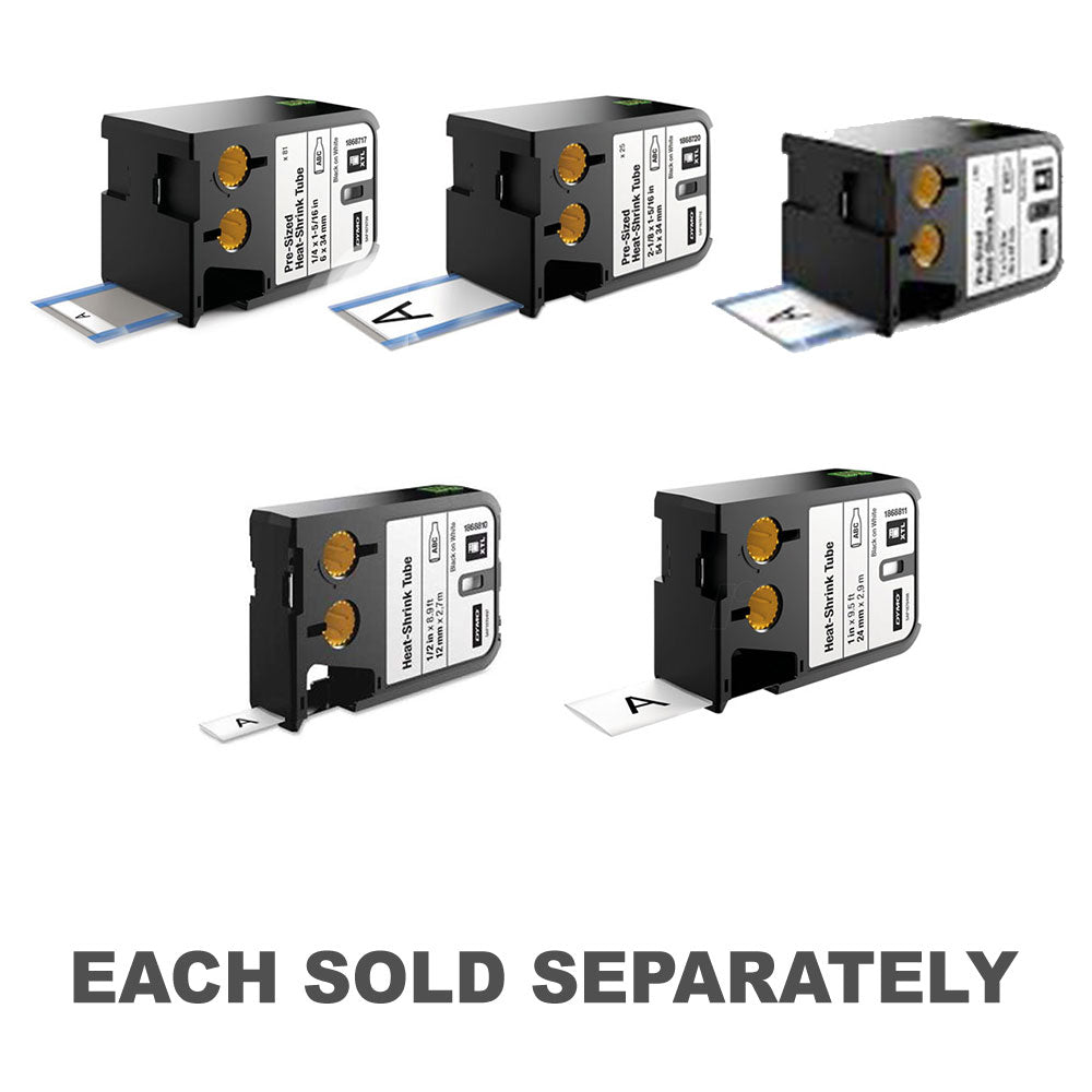 • I produttori di etichette DyMo XTL stampano direttamente su tubi di shrink di calore continuo o pre-size.