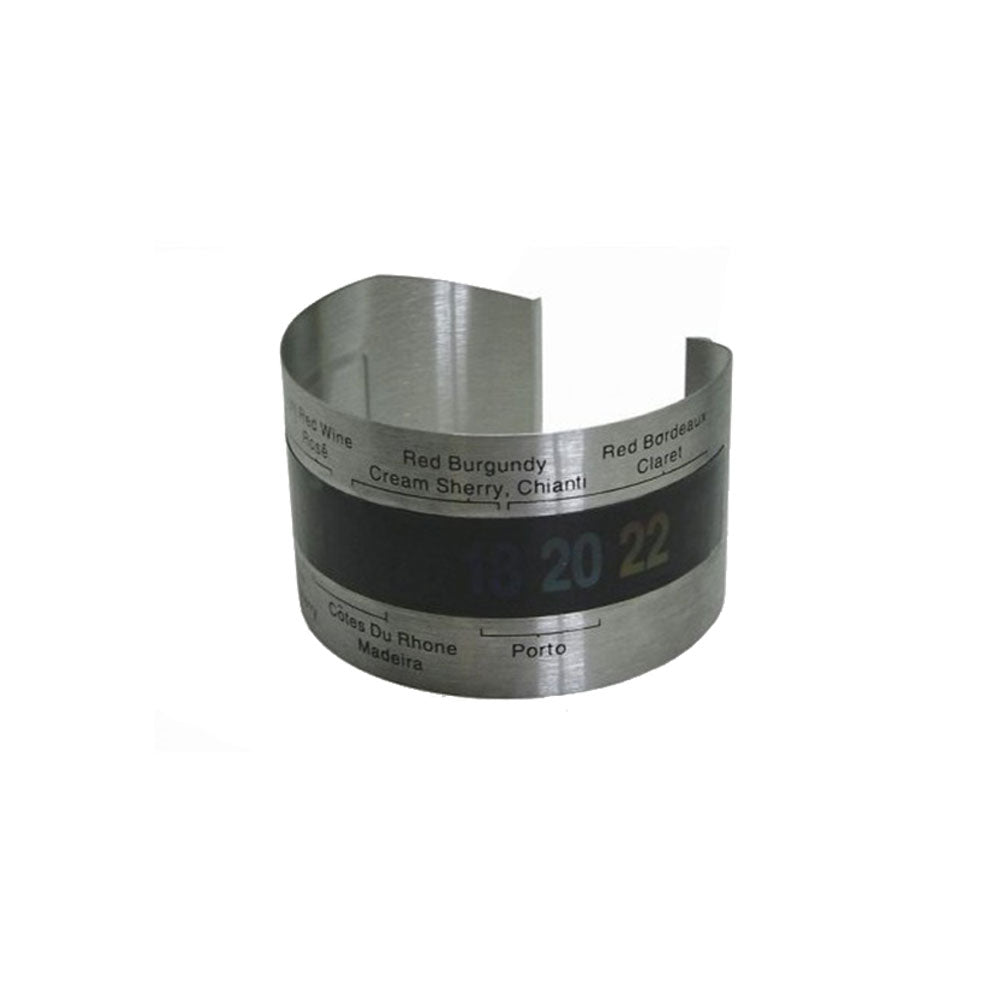 Il termometro a bottiglia Vin Bouquet è un prodotto moderno con un design elegante. Il bordo del termometro è realizzato in plastica e materiale termoattivo. Basta metterlo sulla bottiglia e dopo un po ', la temperatura corrente apparirà sulla banda. Caratteristiche: * Goditi il ​​tuo vino alla temperatura adeguata con un termometro per il vino