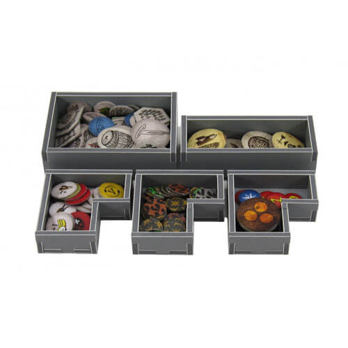 このキャンペーン3インサートは、RobinsonCrusoe®とBeagle Vol。の航海と互換性があるように設計されています。 1®拡張。このデザインは、効率的なストレージと改善されたゲームプレイの両方を提供します。トレイはゲーム中に利用でき、セットアップと明確な時間を大いに助けます。ルールとボードは、トレイの上にふたとして機能します。挿入物は、図のように2つの層に配置されています。島の六角形のタイルと最初のプレイヤートークンは、画像の下部にある他のトレイの間に保存されていることに注意してください。