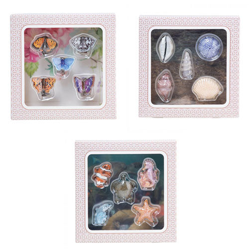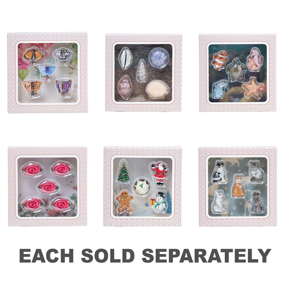 - Verkocht in een set van 5 vlinderontwerpen (klein koper, gemarmerd wit, gemeenschappelijk blauw, komma en paarse keizer)