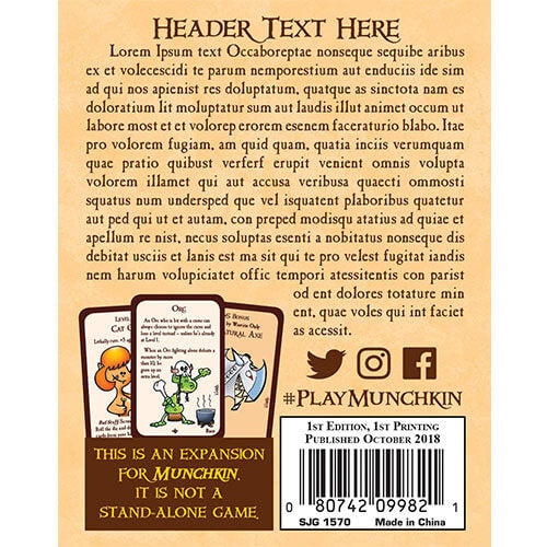 • Dit is een uitbreiding voor Munchkin; Het is geen zelfstandige game.