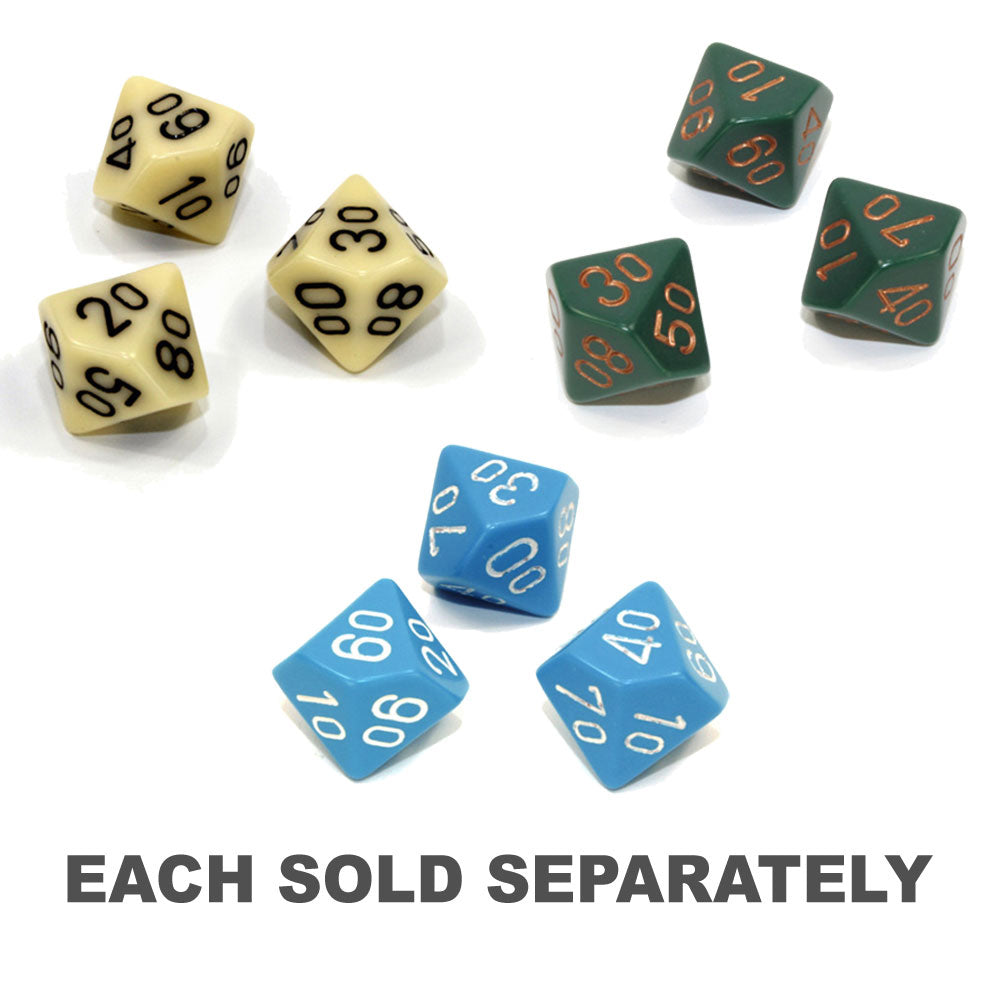 Opaque Polyhedral Ivory/black Tens 10 ~ Multiple loose dice are pictured to show all sides and possible color variations. Item Code is for individual dice.