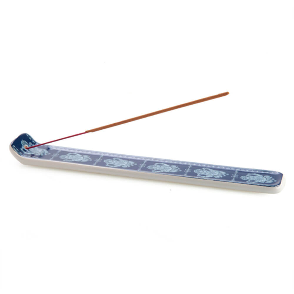 Hvit og blå røkelsesbrenner med den hinduistiske guddommen, Ganesha. Laget av keramikk av kvalitet
