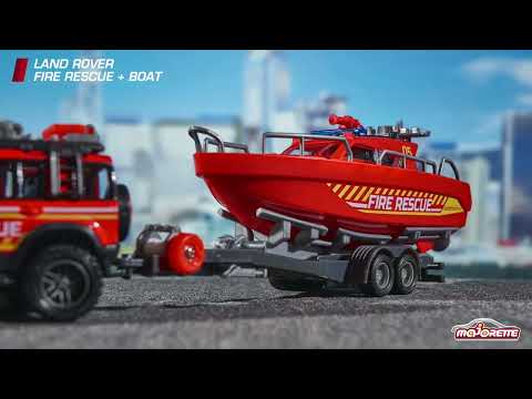 Majorette Fire Rescue Land Rover med båtmodellbil
