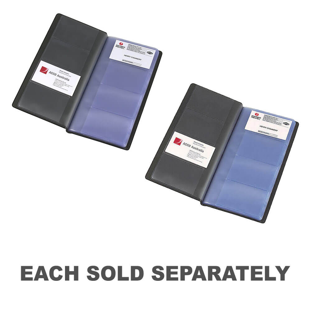 Tilgjengelig med eller uten indeks. Slimline visittkortbok passer enkelt inn i kofferten eller vesken, slik at kontaktene dine alltid er for hånden. Langvarige plastsider beskytter og lagrer visittkortene dine.