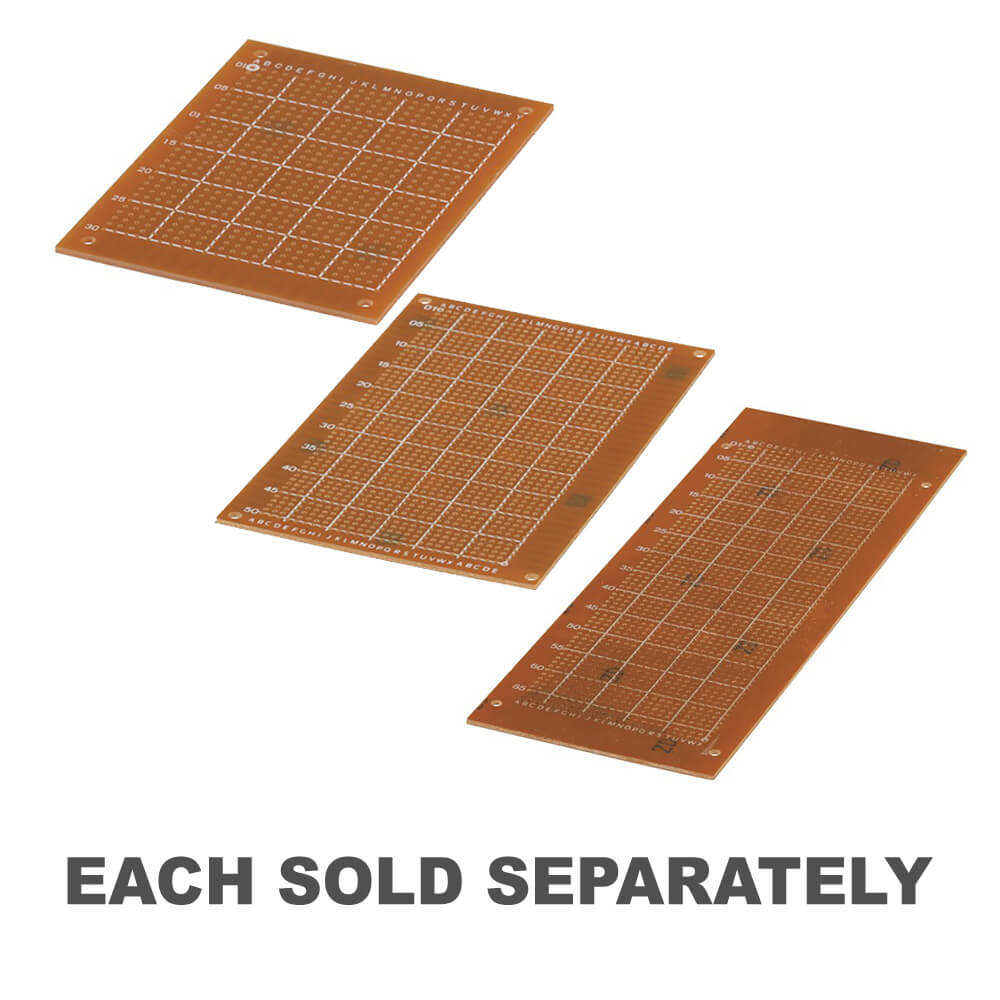 Den lave kostnaden å bygge prototyper på. Hver smultring skilles fra naboene med omtrent et gap på 0,5 mm. Dette isolerer hver pute effektivt, men gjør det også enkelt å bygge bro over for å lage sammenkoblinger. Hvert brett har også `fingre 'i motsatte ender med en 3,6 mm kantbane. Disse kan brukes til å koble til og fra brettet eller til en kortkontakt. Endelig har den ikke-lodde siden av brettet et alfabeltnettnett trykt på det for å hjelpe til med komponentidentifikasjonskortoppsett.