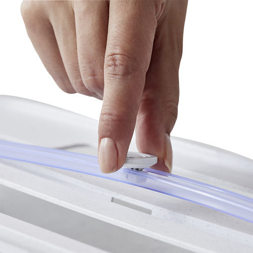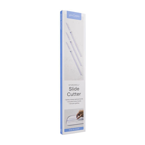 Storaroll Slide Cutter Replacement Track fra YouCopia passer rett inn i YouCopia Storaroll Food Wrap Dispenser når du er klar for et friskt kutt av aluminiumsfolie, plastfolie, pergamentpapir eller voks. Denne erstatningskutteren har en beskyttende fingerknapp som glir frem og tilbake over banen for et rett, rent snitt hver gang. Det harde stålbladet testes for å lage mer enn 1000 kutt før du viser tegn på sløvhet.