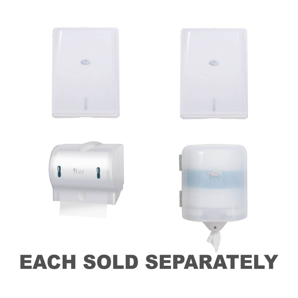 Dozownik ręcznika z przeplatanym ręcznikiem Livi dla jednego arkusza na raz.
