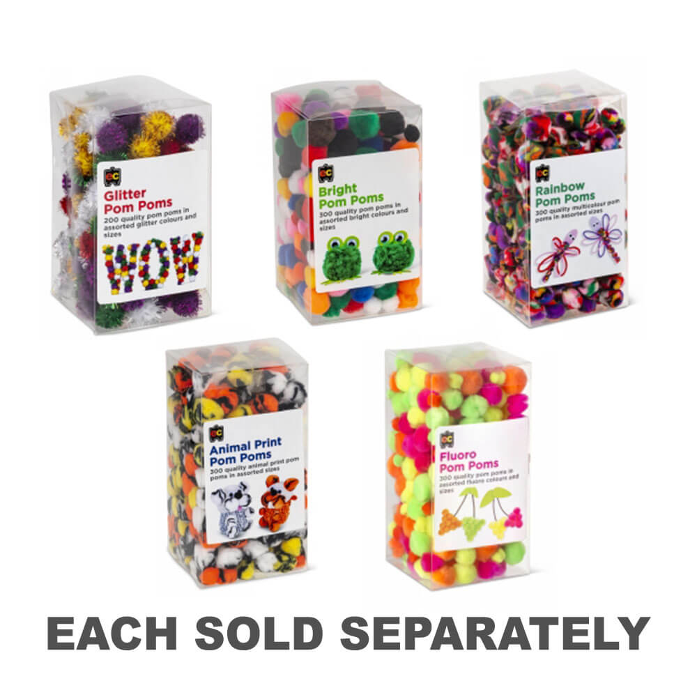 Pompy są zabawne z wielu sprytnych rzeczy, tworząc świąteczne pończochy lub po prostu bawią się z nimi. Te błyszczące i puszyste POM POM dodają efekt 3D do każdej aktywności rzemieślniczej. Różne kolory i rozmiary w pudełku 200.