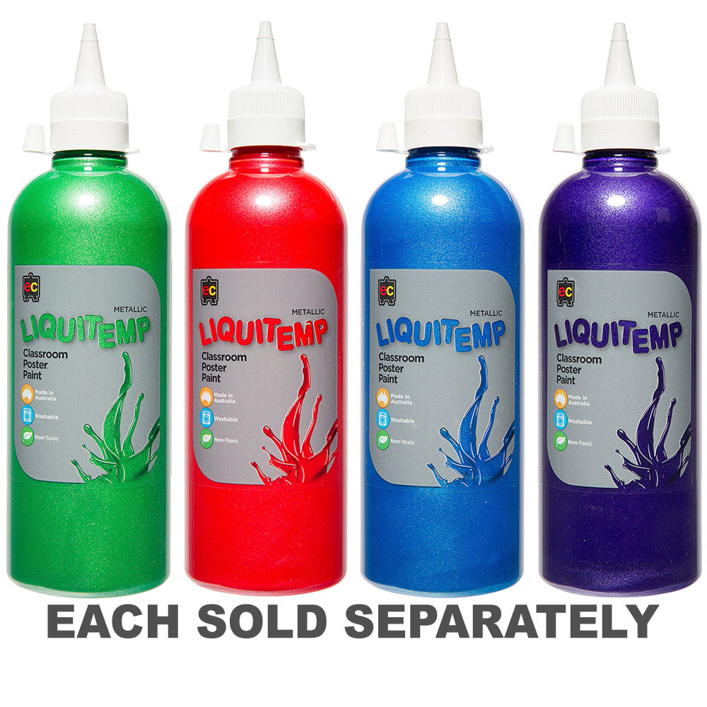 Add a touch of glamour to your artwork with the Metallic Liquitemp Classroom Poster Paint. Proudly made in Australia, these poster paints introduce a metallic zest to your creative endeavours.