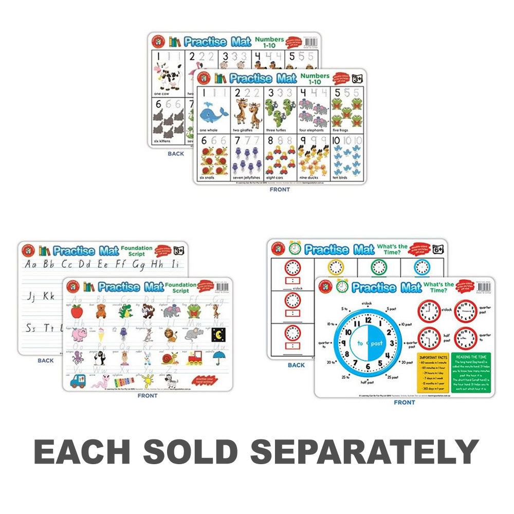 Dzieci pokochają ćwiczenia umiejętności czytania i liczenia dzięki tym angażującym i kolorowym matom praktycznym. Co ważne, jest to jedyny produkt na rynku dostosowany do programu nauczania w Australii. Unikalny dla tego produktu; Matę może być używana z suchym długopisem, umożliwiając go do czyszczenia do użytku. Zachęcone, dzieci wkrótce opanują zarówno umiejętności pisania ręki, jak i liczenia na matach treningowych poprzez powtarzającą się zabawę.