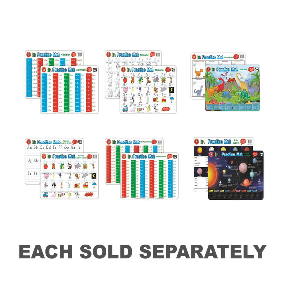 A los niños les encantará practicar sus habilidades de aritmética con esta alfombra de práctica atractiva y colorida. Es importante destacar que este es el único producto en el mercado adaptado al plan de estudios de Australia. Exclusivo de este producto; El tapete se puede usar con un bolígrafo en seco que permite que se limpie para su uso una y otra vez. Alentados, los niños pronto dominarán las habilidades de aritmética en la alfombra de práctica a través del juego repetido. Excelente calidad duradera. Tamaño: 42 cm x 28 cm cada uno. Adecuado para niños 3+