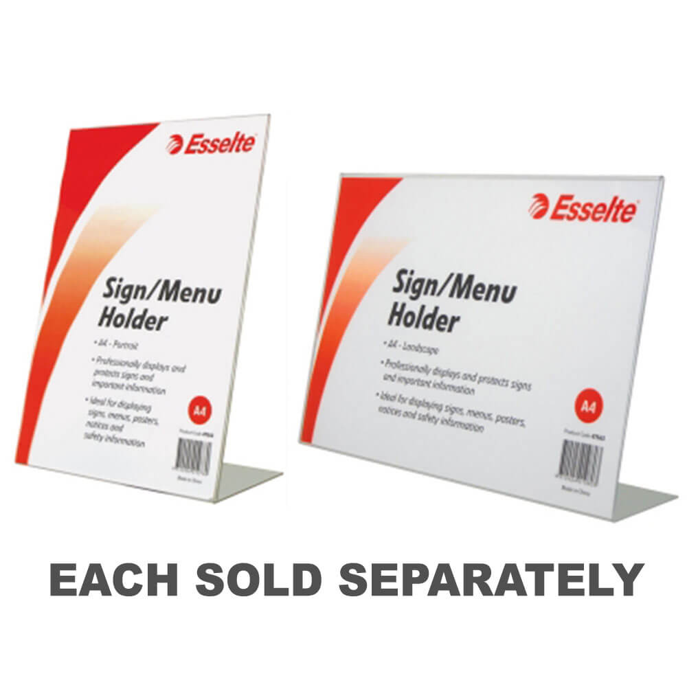 Los soportes para carteles/menús de Esselte son ideales para exhibir menús, fotografías, carteles informativos y folletos. Expositores de una sola pieza de alta calidad para todas sus necesidades de presentación.