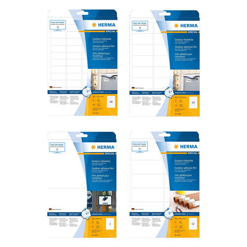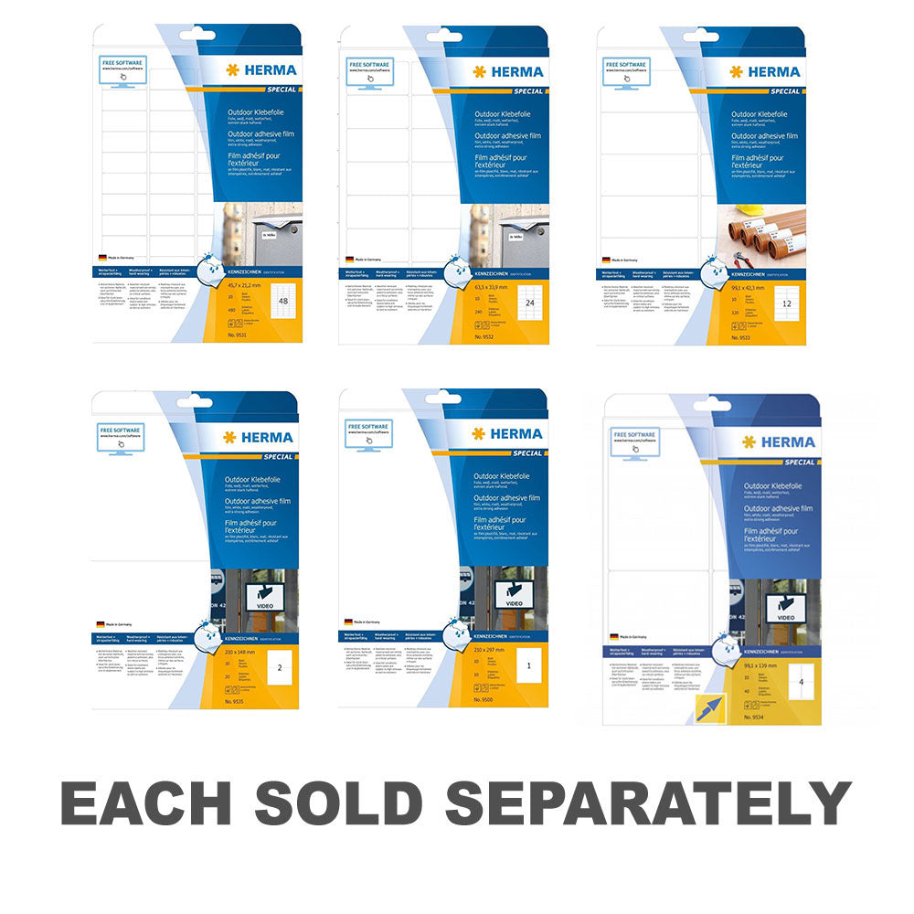 Brave the elements with confidence using Herma Outdoor Film Labels, available in a convenient pack of 10 A4-sized sheets in pristine white! Are you tired of labels that can't withstand outdoor conditions? These outdoor film labels are your solution. Whether you're marking equipment, labeling plants, or creating outdoor signage, these labels offer unmatched durability and weather resistance. Their A4 size provides ample space for large-scale projects, while their white background ensures maximum visibility. Say goodbye to faded labels and hello to lasting clarity with Herma Outdoor Film Labels, your ultimate outdoor labeling solution!