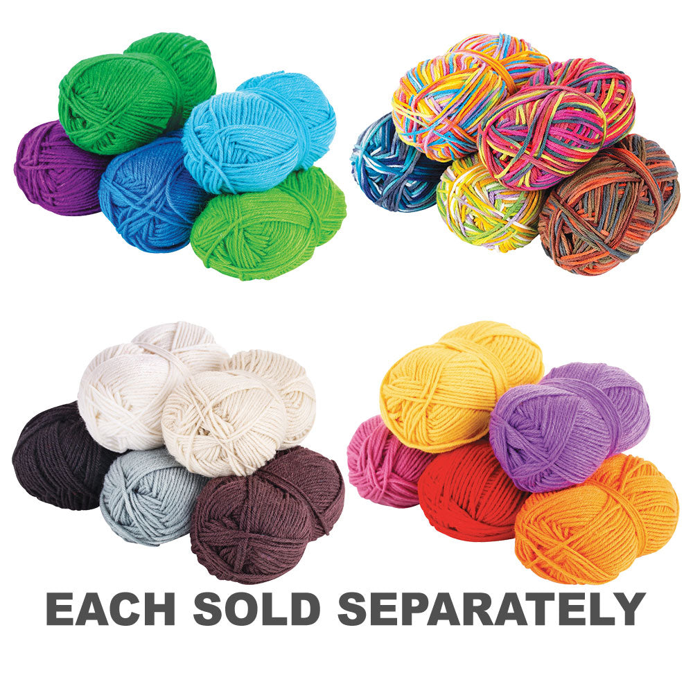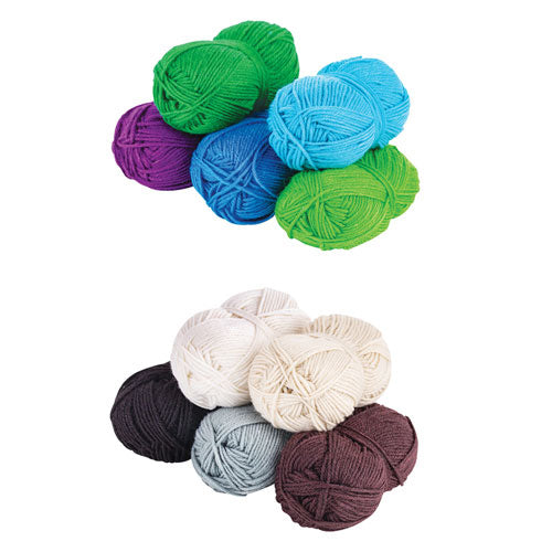 Acrylic Wool Cool Assorted 5's offers a fantastic selection of 4-ply 90% acrylic wool in an assortment of five cool colours: purple, teal, blue, emerald, and light green. Each roll is approximately 90m long, providing you with plenty of material for various knitting, crochet, or crafting projects.