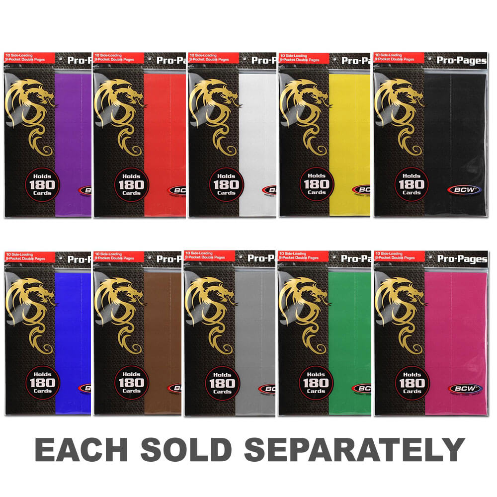 Nu kan du färgkoordinera och indexera din magi: The Gathering, Pokemon och Yugioh Cards i ditt bindemedel! BCW PRO18S-sidorna rymmer 18 kort och har sidobelastningsfickor för att avskräcka korten från att glida på sin plats. Våra premium, dubbelsidiga, arkivsäkra polypropylensidor kommer inte att skada korten som lagras inom och erbjuder en attraktiv metod för både lagra och visa dina samlarobjekt.