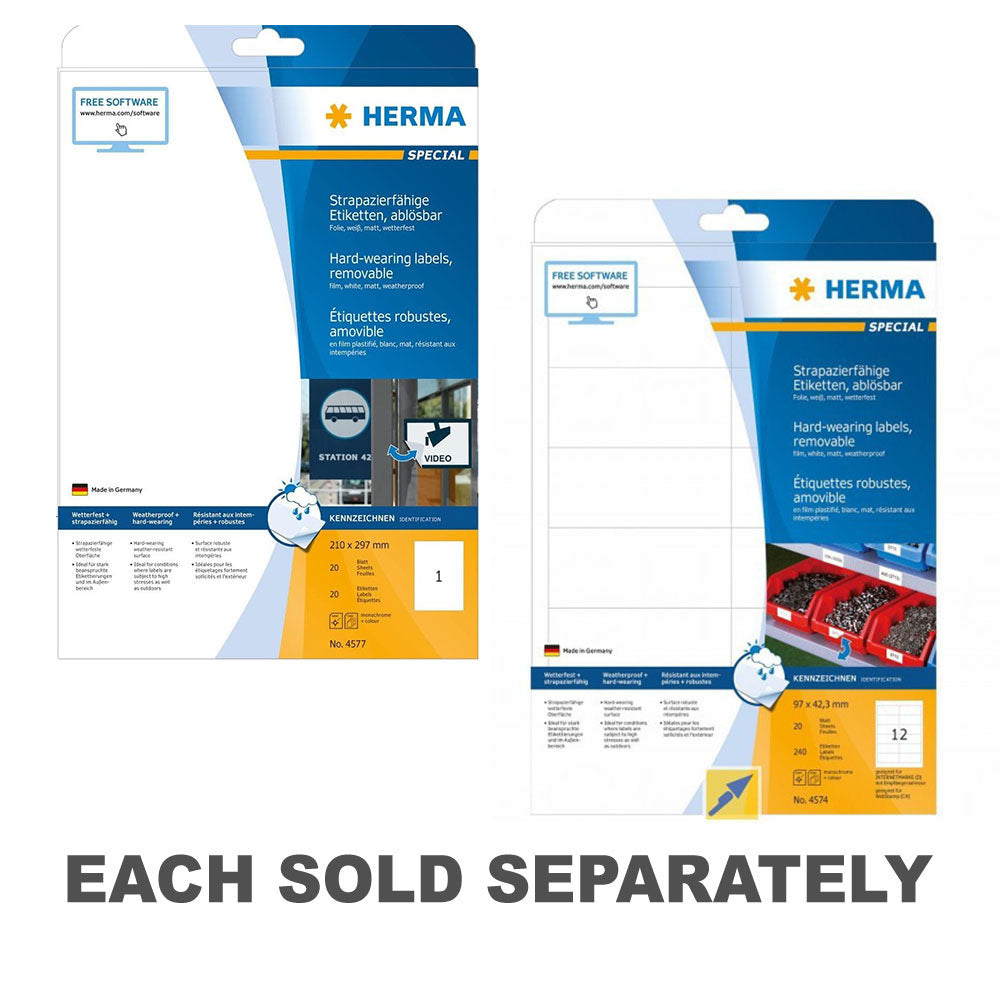 - Applicera och ta bort dessa hållbara A4-storlek vita etiketter utan att lämna rester.