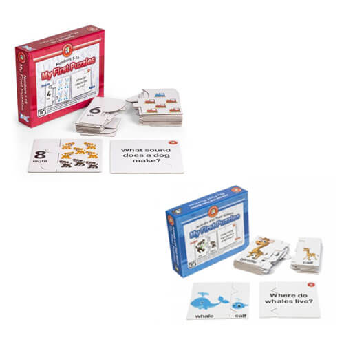 Med dessa enkla pussel kommer barn att lära sig att känna igen 15 djur och matcha djuret korrekt med sitt barn. Barn kommer att utveckla matchningsförmågor såväl som visuellt och ordigenkänning. Förälder och lärare kan också läsa djurnamnen för att uppmuntra syn erkännande.