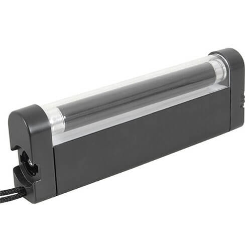 Detta kommer inte att fylla ett mörkt festrum med vita glödande tänder. Det fungerar dock bra i ett litet utrymme. Inkluderar ett litet spotljus och handbärrem. Kul när camping etc. UV -röret är 4 watt -betyg.